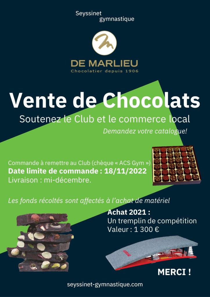 L’ACS Gym organise des ventes de chocolats en partenariat avec la maison DE MARLIEU.